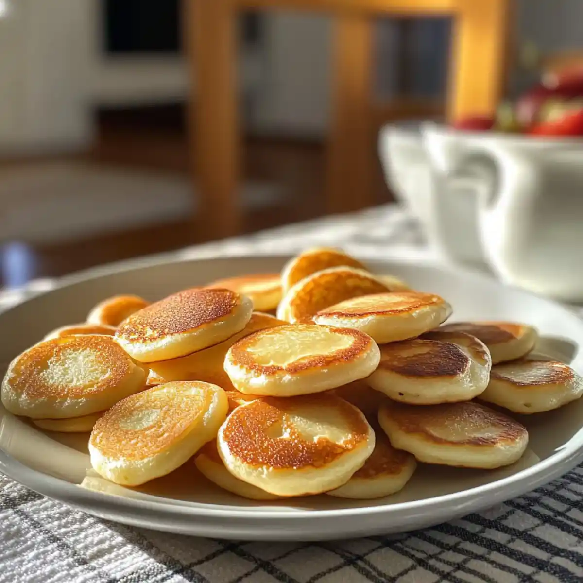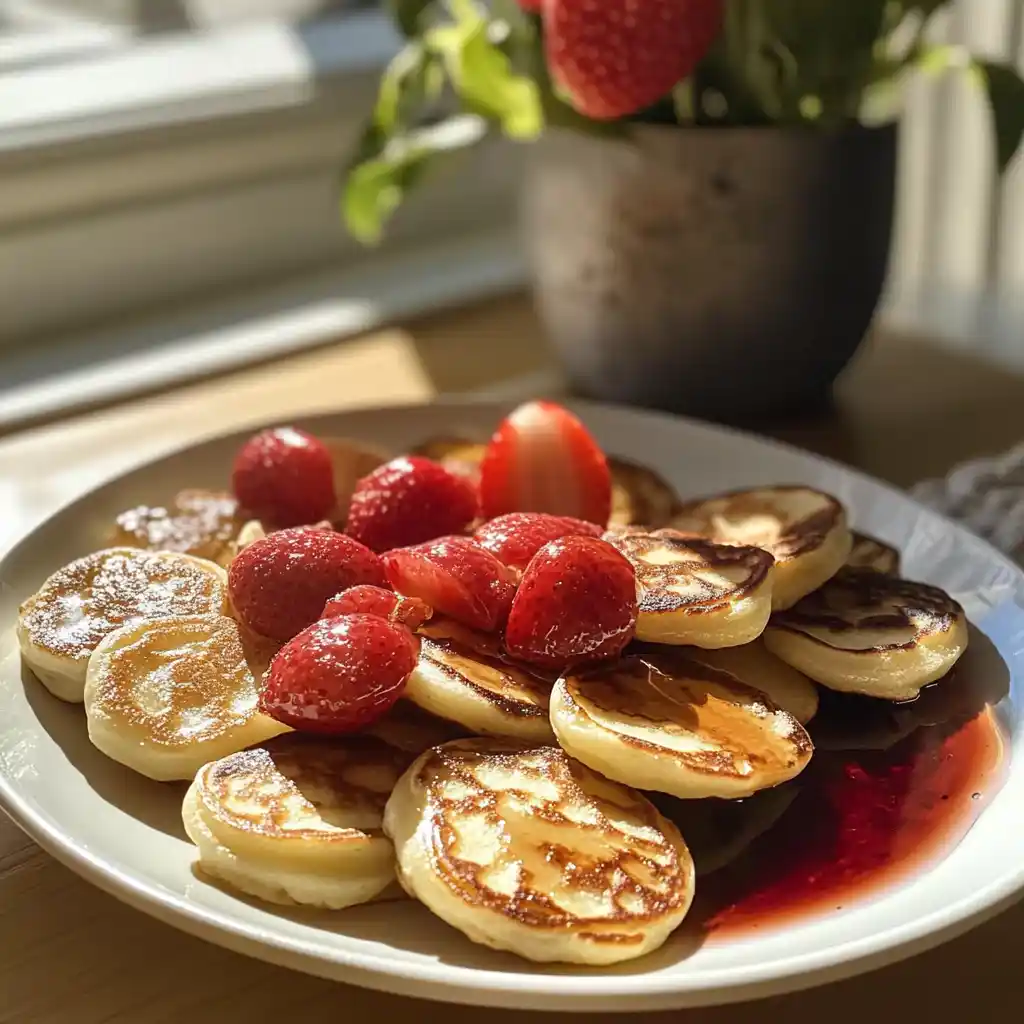 Mini pancakes, also known as tiny pancakes or bite-sized pancakes, are smaller versions of traditional pancakes, perfect for kids and playful breakfast presentations.
