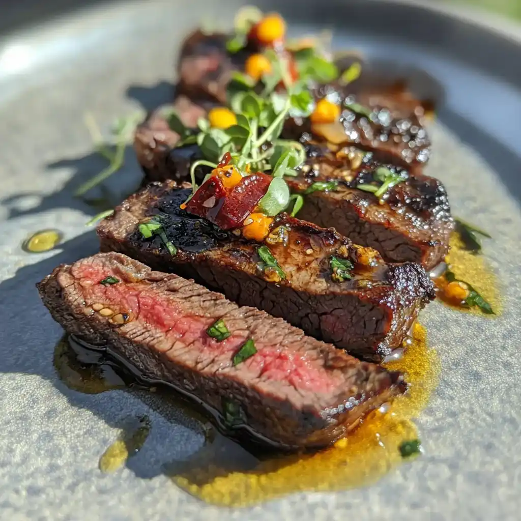 - Instructions: Set your sous-vide machine to 130°F for medium-rare. Place the marinated steak in a vacuum-sealed bag and cook in the water bath for 2 hours. After cooking, sear the steak in a hot pan for 1 minute per side to develop a crust.