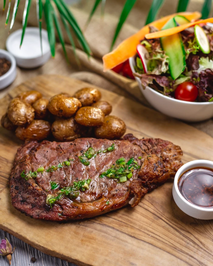 - Chimichurri Steak with Roasted Potatoes: Drizzle your steak with a vibrant chimichurri sauce, made with parsley, garlic, vinegar, and olive oil, and serve with roasted potatoes for a fresh, zesty take.